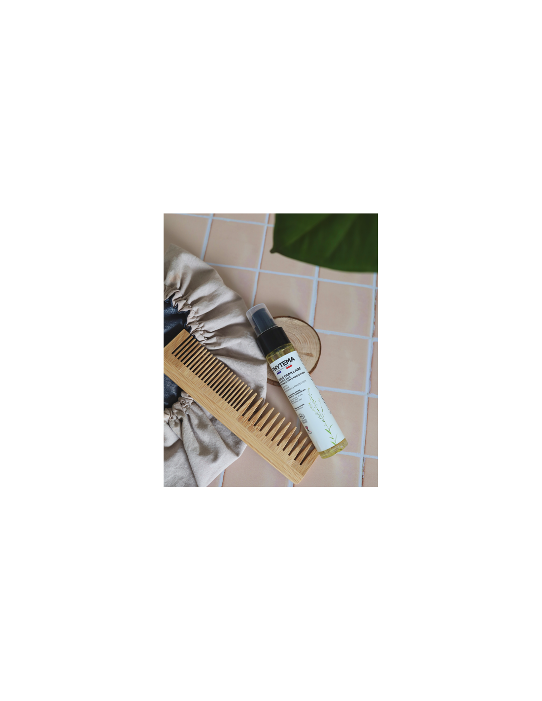 Huile Avant shampoing pour hydrater et protéger les cheveux abimés et desséchés, à base d’extraits naturels de guimauve bio et d’huiles végétales biologiques de lin, chanvre, prune, et cameline.